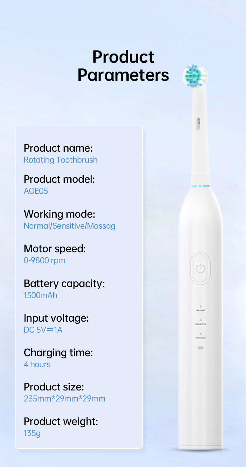 5:Three working modes.Normal/Sensitive/Massage Rotating speed:6000-8000 times/min