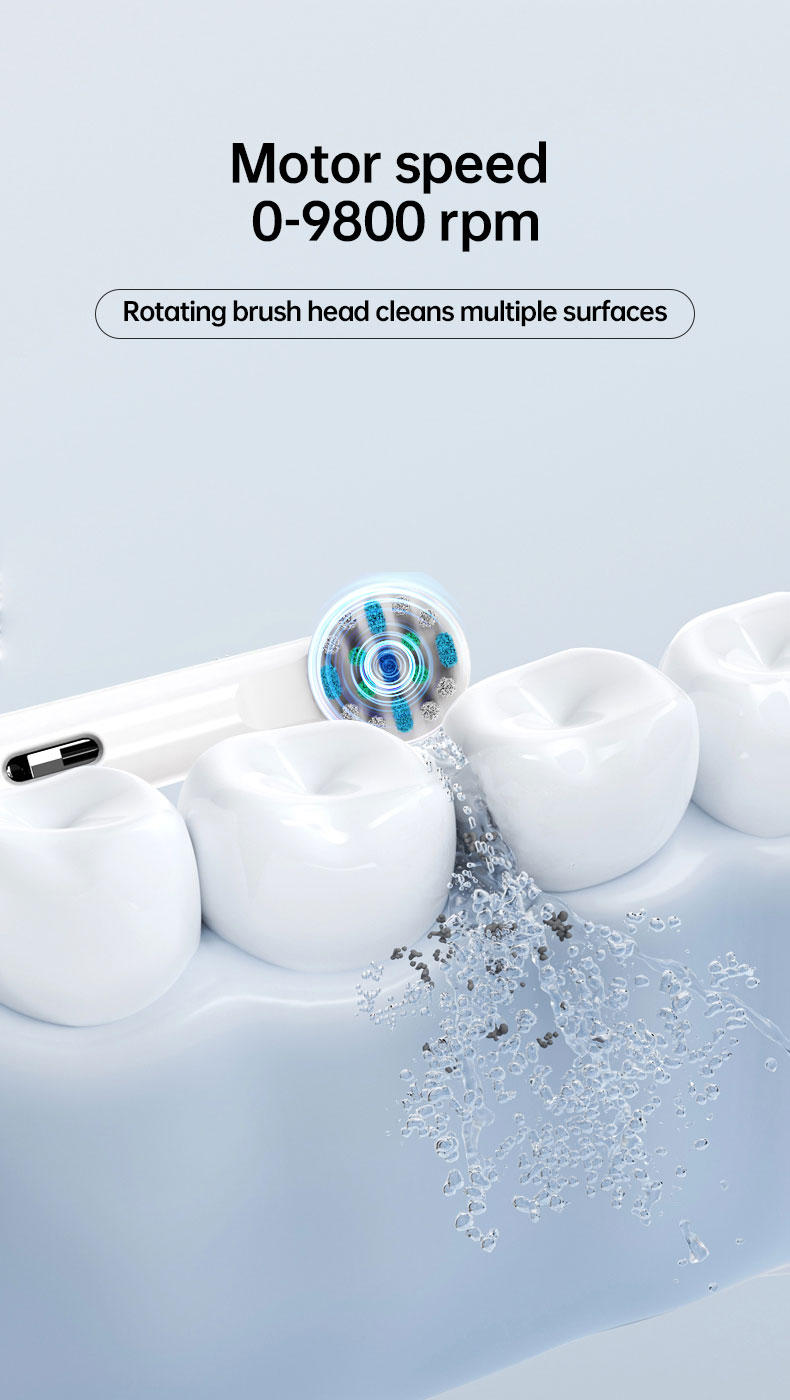 【3 Modes for Various Oral Care Needs】3 high-performance modes are designed to meet all your oral care needs and help maintain a healthy mouth. Whitening, Cleaning, Sensitive, Massage. Whitening mode 100% teeth stain removing and tartar dislodging on teeth. Clean mode goes deep into the inter dental, cleans the dirt hidden in the periodontal. While massage mode offers a gentle massage of gums