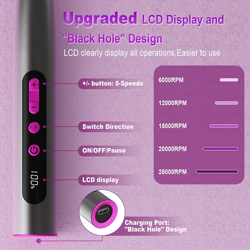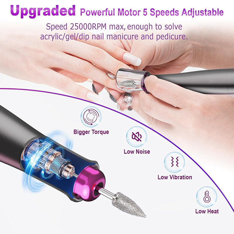Máy khoan móng tay bằng điện Động cơ mạnh mẽ được nâng cấp hoàn hảo cho mọi nhu cầu Làm móng tay và móng chân của bạn, bao gồm loại bỏ móng acrylic, móng Poly gel, gel bọ cánh cứng, móng bột nhúng, lớp biểu bì, da chết, vết chai và móng dày.