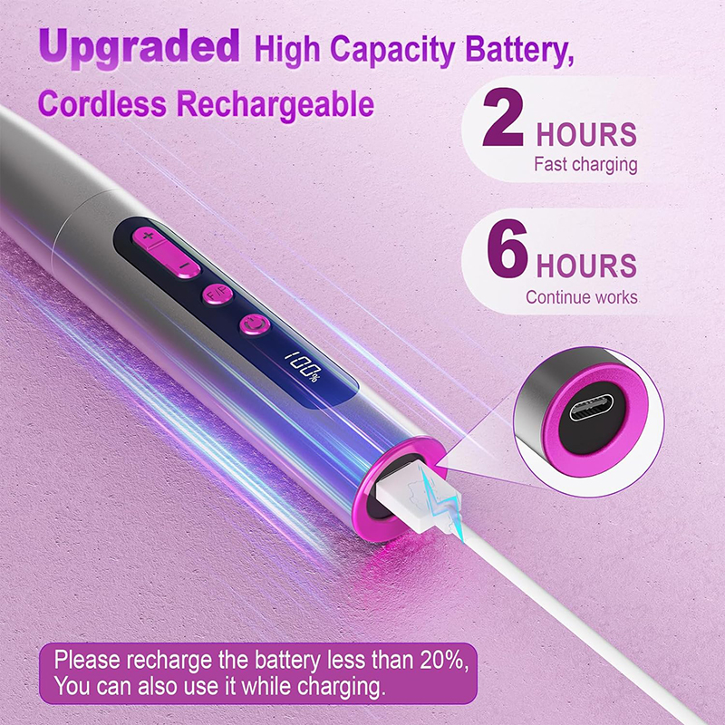 máy khoan móng tay bằng điện Pin dung lượng cao được nâng cấp, 2 giờ Sạc nhanh và 6 giờ Tiếp tục hoạt động. Dũa móng tay điện phù hợp với bộ đổi nguồn USB, máy tính xách tay, nguồn điện thoại di động, v.v. Nếu công suất máy khoan móng tay không dây dưới 20%, bạn cũng có thể sử dụng trong khi sạc.