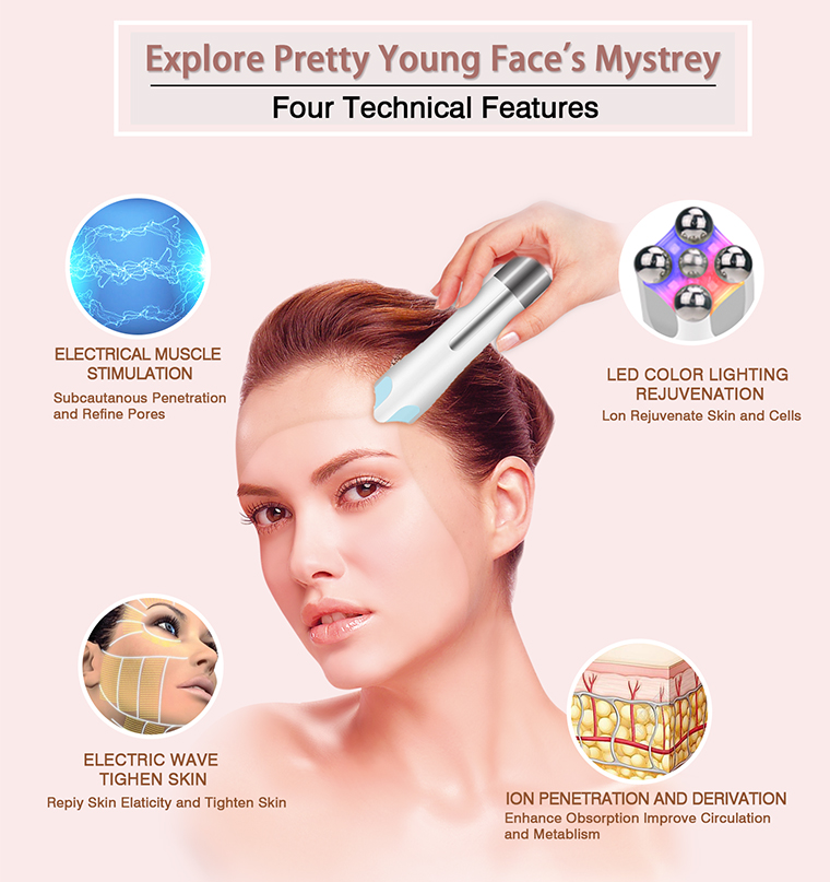 LỢI ÍCH LÀ GÌ? -- Máy làm đẹp là thiết bị chống lão hóa đa chức năng bao gồm công nghệ Tần số vô tuyến (RF) với liệu pháp ánh sáng đỏ/xanh, EMS giúp giảm nếp nhăn, cải thiện khả năng thẩm thấu và hấp thụ của da, v.v.