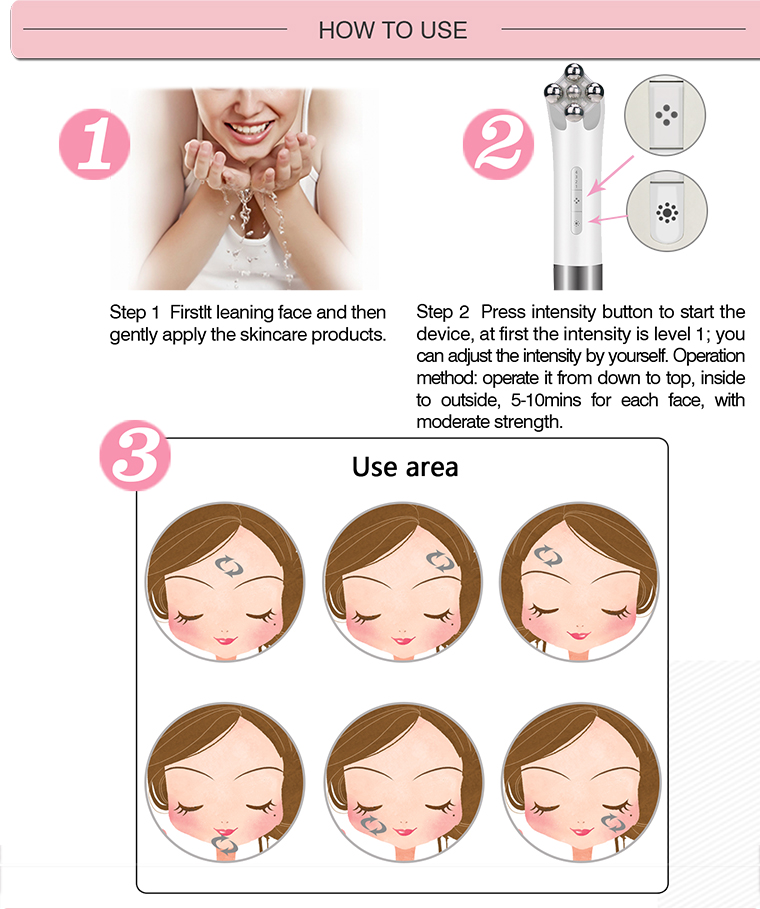 CHĂM SÓC DA 6 TRONG 1 --RF được thiết kế 6 chế độ phù hợp với quy trình chăm sóc da hàng ngày. Đó là #THẨM QUYỀN để cải thiện khả năng hấp thụ của da, #CLEANING để làm sạch da mặt kỹ lưỡng, #ĐẶC BIỆT để chăm sóc mắt, #LIFTING để làm săn chắc da và #COOL để làm dịu và khử trùng da.