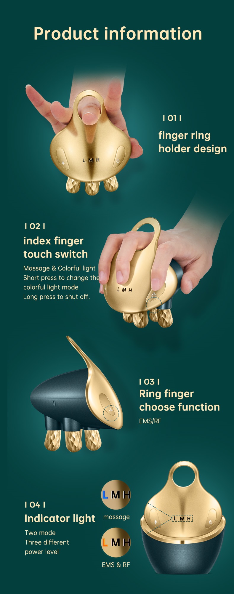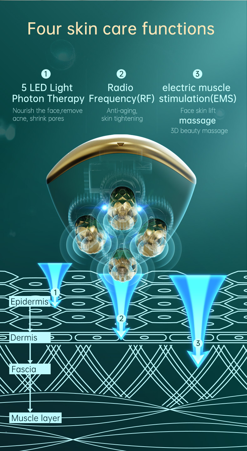 2. Massage + EMS + RF đa chức năng, có thể điều chỉnh 3 tốc độ và cường độ