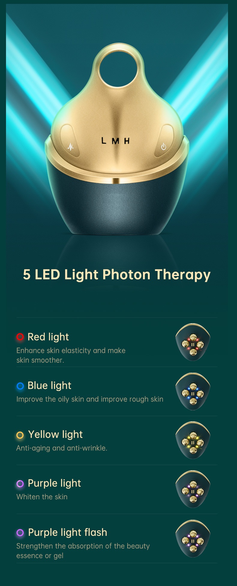 LỢI ÍCH LÀ GÌ? -- Máy làm đẹp là thiết bị chống lão hóa đa chức năng bao gồm công nghệ Tần số vô tuyến (RF) với liệu pháp ánh sáng đỏ/xanh, EMS giúp giảm nếp nhăn, cải thiện khả năng thẩm thấu và hấp thụ của da, v.v.