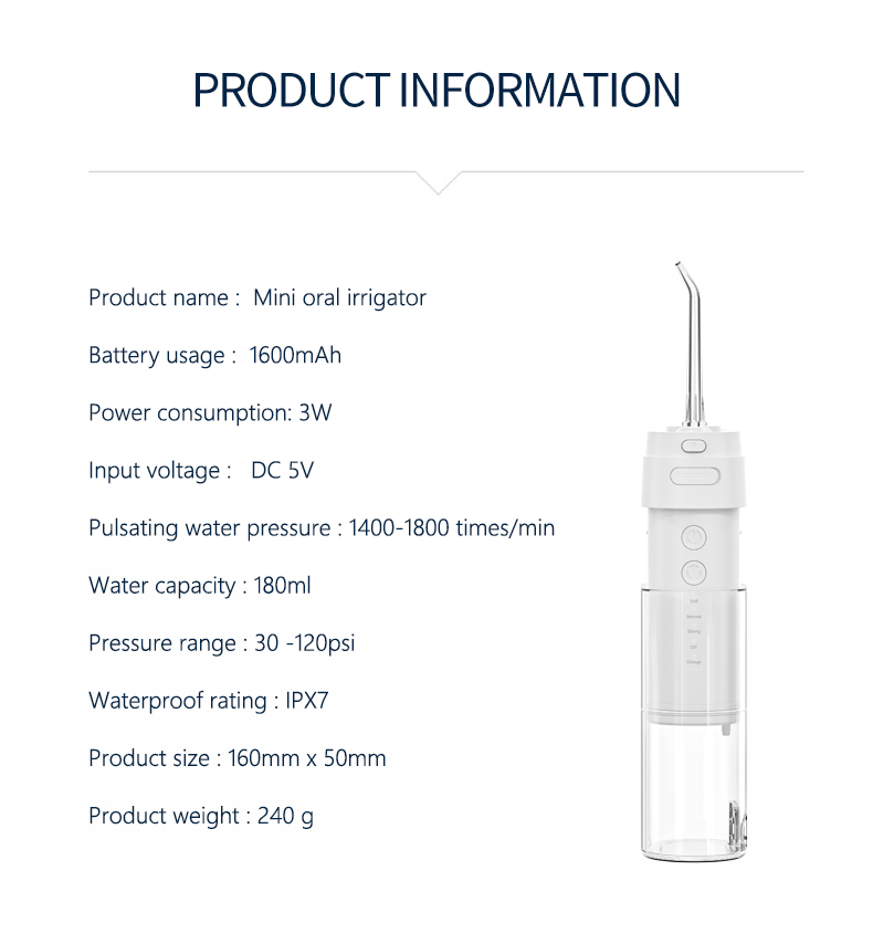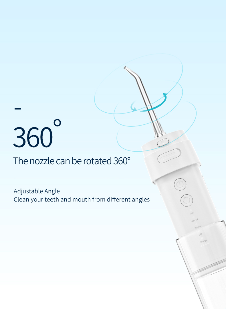 Tăm tăm nha khoa bằng nước này tạo ra xung áp suất nước cao ở mức 1400-1800 lần mỗi phút, loại bỏ hiệu quả 99,9% mảng bám răng để làm sạch sâu răng. Tăm tăm nha khoa bằng nước này massage nướu, thúc đẩy lưu thông máu và giải quyết các vấn đề về răng miệng như hôi miệng, răng chỉnh nha