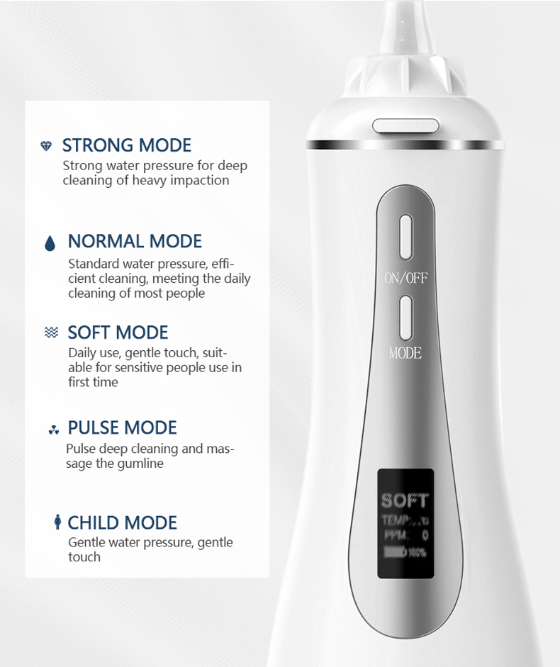 Được đánh giá chuyên nghiệp bởi đội ngũ nha khoa Hoa Kỳ, máy xỉa răng của chúng tôi cung cấp năm chế độ tiện lợi phù hợp với các nhu cầu khác nhau của 99% nhóm tuổi khác nhau, đồng thời đảm bảo hiệu suất và tuổi thọ tối ưu. Tay cầm tiện dụng và 6 vòi phun có thể hoán đổi cho nhau đảm bảo trải nghiệm thoải mái và linh hoạt. Đây là một món quà chu đáo cho các dịp sinh nhật, Lễ tạ ơn Giáng sinh, Ngày của Cha, Lễ tình nhân hoặc chăm sóc sức khỏe răng miệng cho những người thân yêu của bạn