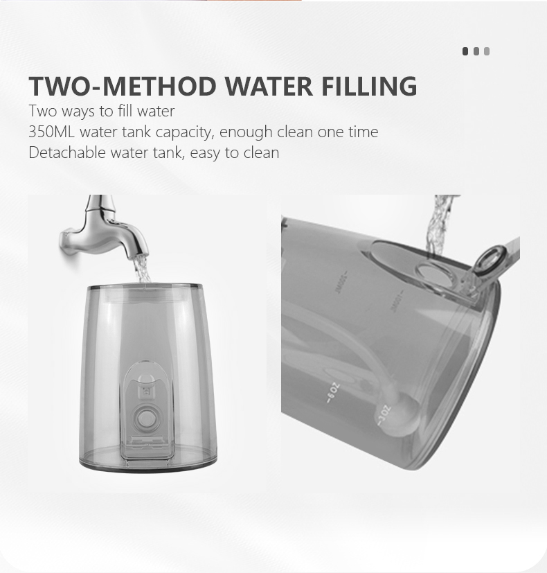 Máy tăm nước nha khoa này có bình chứa nước 350ml được nâng cấp, dung tích gấp đôi so với các mẫu cũ khác, loại bỏ nhu cầu châm thêm nước thường xuyên và giúp việc vệ sinh răng miệng của bạn thuận tiện và hiệu quả hơn