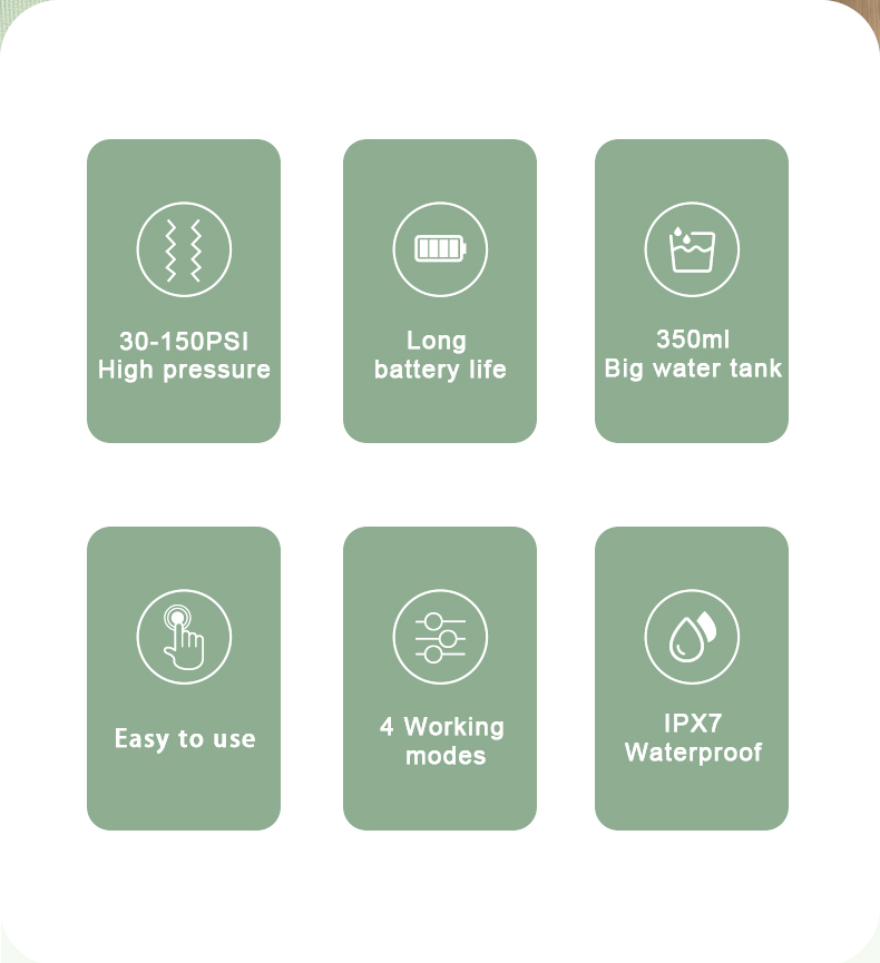 Máy nha khoa nước không dây của chúng tôi có khả năng chống thấm vượt trội, cho phép dễ dàng vệ sinh và sử dụng an toàn khi tắm.