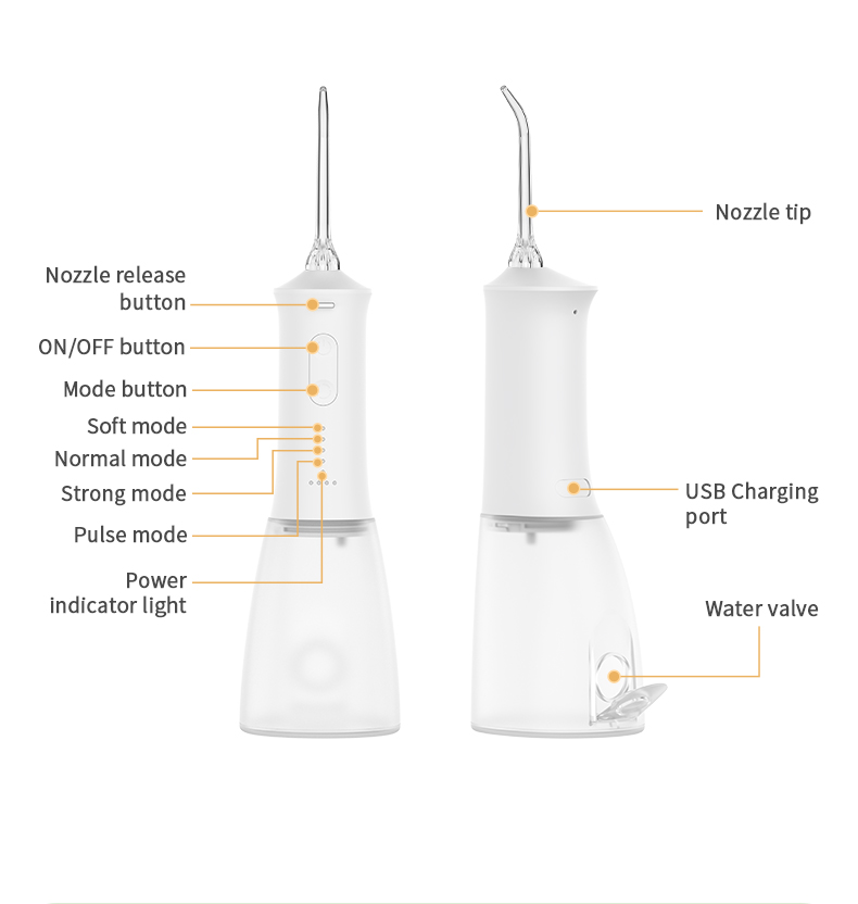 Tên sản phẩm: Máy tăm nước cầm tay sạc USB có thể sạc lại Máy tăm nước nha khoa chống nước Ipx7